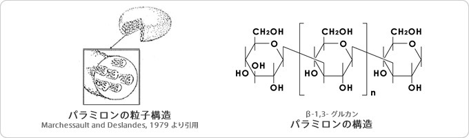 このパラミロンにはユーグレナ(和名:ミドリムシ)の光合成によって生産された糖を効率よく貯蔵する働きがあるとされています。